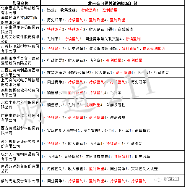 2、各被否企业发审委询问以关键字形式概况汇总如下: