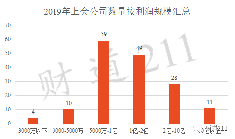 2、我们按照2019年上会的各拟上市公司预披露更新的财务数据按利润区间段分为3000万以下、3000-5000万、5000万-1亿、1-2亿、2-10亿和10亿以上的区间段,各区间段上会及过会公司数量如下所示: