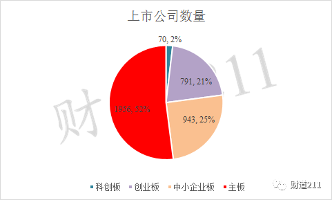 截至2019年12月31日,A股上市公司共有3760家,其中主板上市公司1956家,占比52.02%;中小板943家,占比25.08%;创业板791家,占比21.04%;科创板70家,占比1.86%。其中2019年主板新上市公司55家,占比27.09%;中小板26家,占比12.81%;创业板52家,占比25.62%;科创板70家,占比34.48%。可以看出,2019年科创板上市已经是新股登录资本市场的重要渠道。