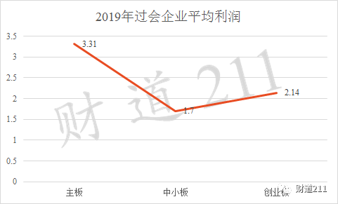 由于几个金融行业拟上市公司及超大型国企如京沪高铁、中国广核等利润过高,故将其剔除统计范围,经调整,2019年上会的150家企业平均净利润2.20亿元,其中过会企业平均净利润2.47亿元,过会企业中主板上会的企业平均模拟净利润3.31亿元,中小板1.70亿元,创业板2.14亿元。