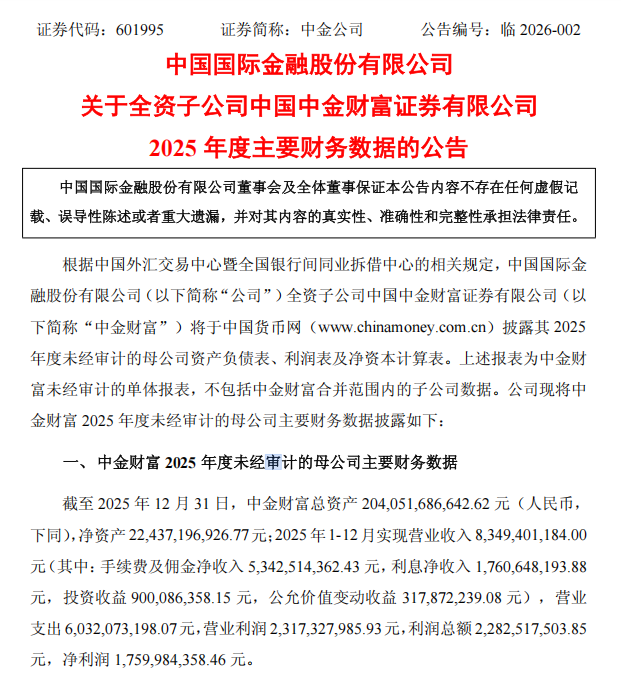 自营业务作为券商周期性最强的业务板块,在2025年股市表现较好的背景下实现突出增长。 中金财富2025年投资收益达9亿元,同比增长31.96%,公允价值变动收益3.18亿元,自营业务整体表现强劲。对于国投证券而言,自营业务是第二大收入来源,2025年自营收入为32.02亿元,同比增长7.78%,占营收比例为30.93%,虽增速低于经纪业务,但仍为公司业绩增长提供了稳定贡献。 行业龙头中信证券则实现了多业务协同增长,公司明确表示,2025年经纪、投行、自营业务等核心收入板块均实现较快增长 国联民生的高增长则兼具特殊性与必然性,国联民生表示,公司完成通过发行A股股份的方式收购民生证券控制权,平稳有序推进公司原有业务与民生证券相关业务的高效整合,并将其纳入财务报表合并范围。公司主动把握市场机遇,积极探索科技、金融与产业的深度融合,以“协同赋能”和“内生增长”为主线提升综合金融服务能力,证券投资、经纪及财富管理等业务条线实现显著增长,同时由于上年同期比较基数较小,本期经营业绩同比大幅提升。 头部抢食跨境红利 2025年券商投行业务的分化格局进一步凸显,背后是港股IPO火爆行情与行业马太效应的双重作用。头部券商凭借国际化布局与跨境服务能力,充分享受市场红利;而A股IPO市场虽有回暖,但头部券商凭借品牌与综合实力持续抢占份额,中小券商则面临业务挤压。 中信证券明确表示,公司坚定推进国际化布局,深化跨境服务能力,叠加香港市场的良好表现,公司境外收入实现较快增长。 国投证券的投行业务表现就反映出部分中型券商的困境。2025年,国投证券投行手续费净收入为6.75亿元,同比下滑17.3%,在公司营业收入中的贡献度仅为7%,投行业务不仅未能成为业绩增长的支撑,反而出现了收入下滑的情况,凸显中小券商在投行业务竞争中的弱势地位。 值得注意的是,部分券商资管业务异军突起,成为业绩补充力量。国投证券资管手续费净收入3.32亿元,同比增长11.86%,占营收比例3.21%。 尽管2025年券商业绩整体高增,但仍有部分券商受到历史遗留风险和市场波动的影响,业绩面临一定的负向冲击。其中,股权质押业务减值和交易性金融资产公允价值变动损失,成为拖累部分券商业绩的主要因素。 哈投股份( 6.900, 0.00, 0.00%)公告称,公司及全资子公司江海证券对历史遗留股票质押回购业务计提资产减值准备,以及对持有的交易性金融资产确认公允价值变动损失,对公司全年业绩产生负向影响,其中报告期公允价值变动损益为损失8860.46万元,减少公司2025年度归属于母公司股东净利润6645.35万元。 行业高景气度同样传导至资本实力层面。截至2025年末,中金财富总资产达2040.52亿元,较上年末增长11.25%;净资产达224.37亿元,较上年末增长16.57%。